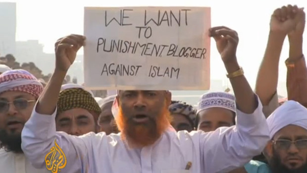 “God is great — hang the atheist bloggers,” the protesters chanted, according to Al Jazeera.