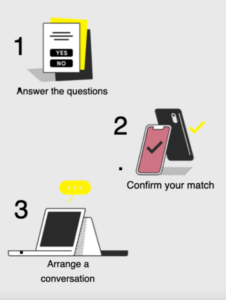 Following this, the users are given some personal information about each other and put into a matching pool. They finally get introduced via email.