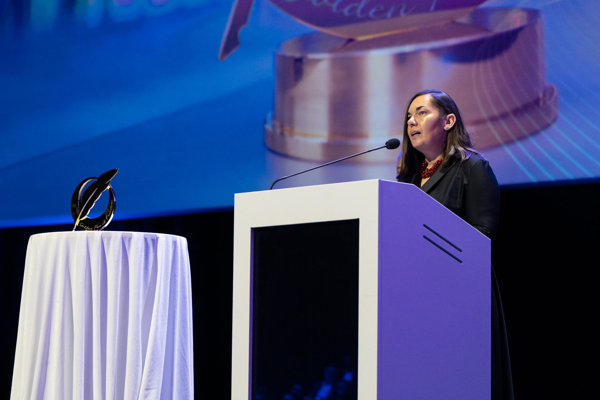 Thank you. Today I stand here – with a tremble in my voice and a deep sense of responsibility in my heart. Because this award is not about me. It is about all those who keep writing, filming, and telling the truth – even when missiles are falling nearby.