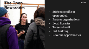 The Open Newsroom is a live event initiative – held at local libraries or community centres – that also calls for collaboration with local community organisations “that can come with some of the same anxieties as working with creatives,” he said.