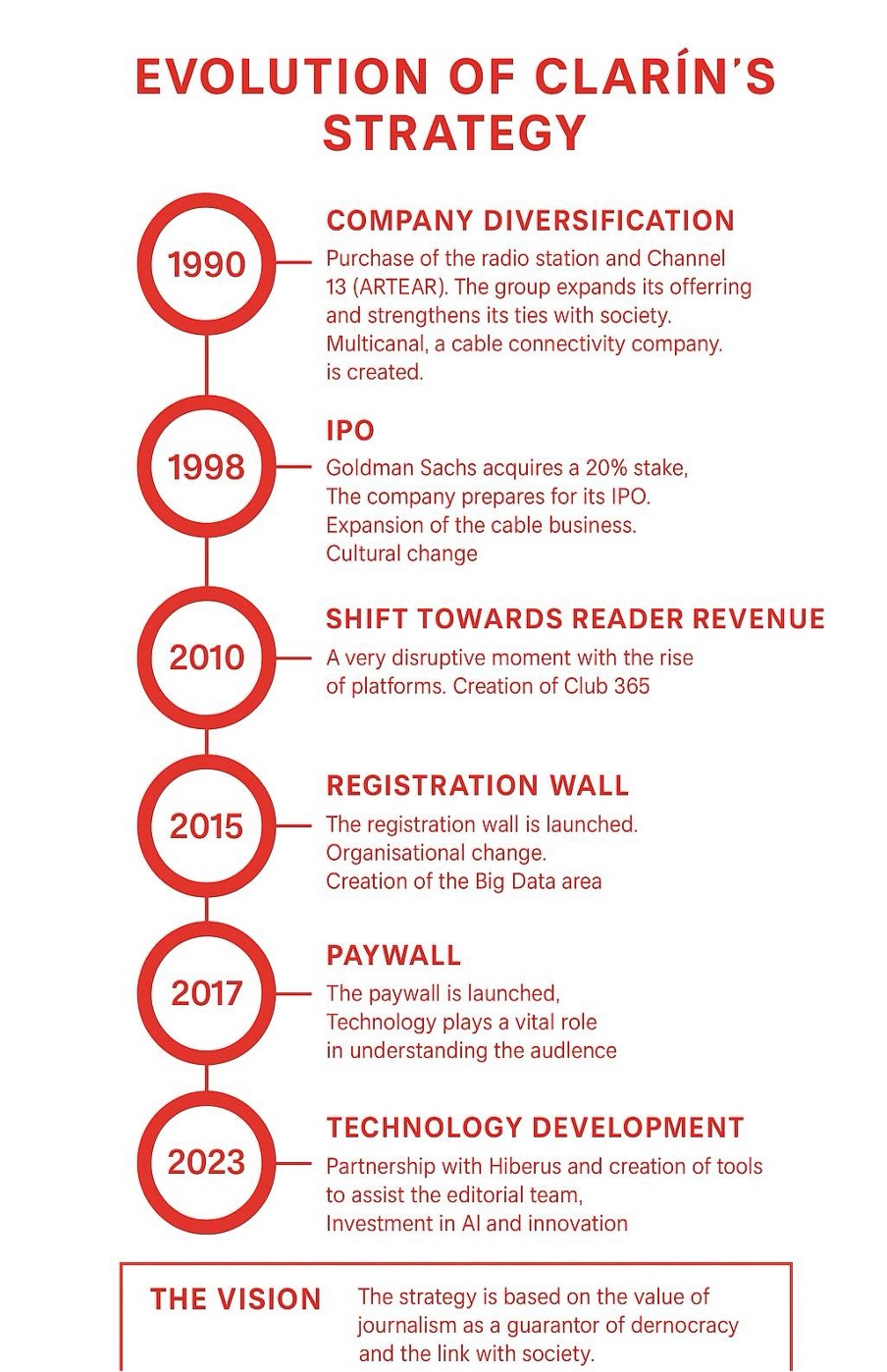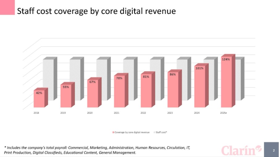 Héctor Aranda: Our strategy has five milestones, starting with the purchase of Radio Mitre and Artear and the creation of Multicanal in 1990, followed by a major shift towards reader revenue, which began in 2010 and culminated in 2017 with the launch of the paywall. All this would not have been possible without Clarín’s vision of investing only in businesses that are linked to the fundamental mission of media in society.
