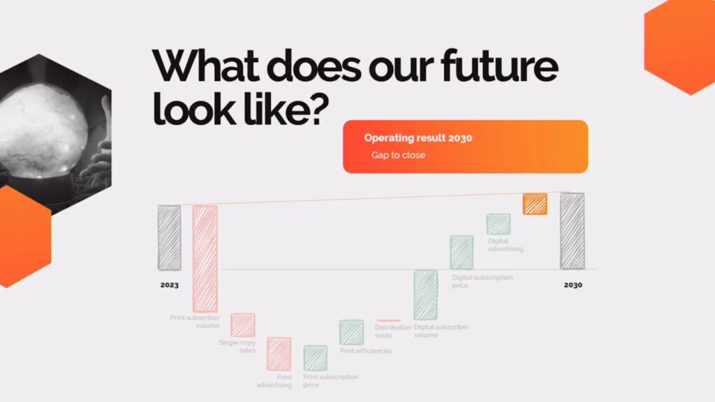 In 2023, Mediahuis, the European news publishing group operating in six countries, drew up a strategic plan to shift from a 70% print margin to a 70% digital margin within seven years, coined its “7-7-7” goal. Paul Verwilt, the group’s Chief Operating Officer, concedes that with new forces at work, the goal is ambitious and difficult to operationalise.