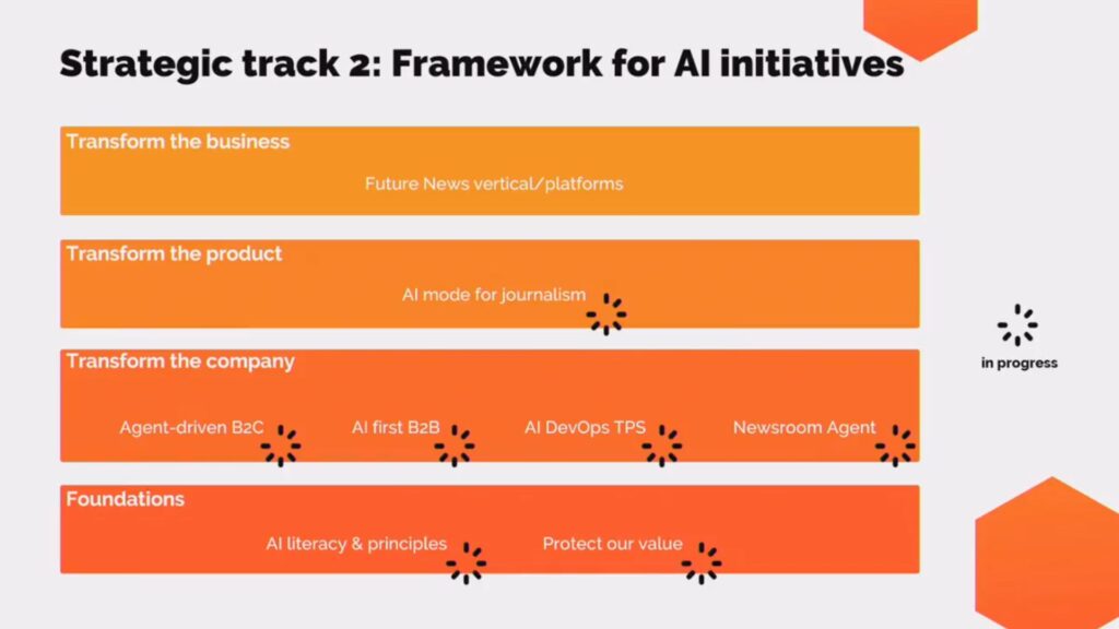 AI and automation are now central to Mediahuis’s operations, organised around four pillars.