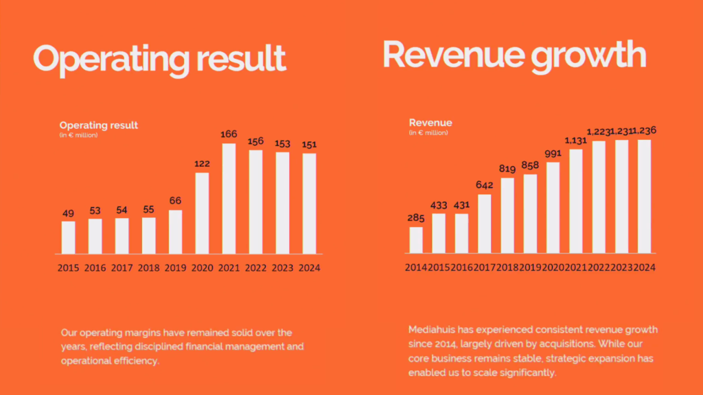 Mediahuis, formed in 2014, saw significant growth in revenue from €300 million in 2014 to over €1.2 billion, all without outside investment; instead, by acquisition and scale. Although highly profitable, there has been no growth in revenue or operating profit in recent years. The leadership team is “very concerned” about how to reach its north star targets by 2030 and thereby maintain its ability to support its journalism.