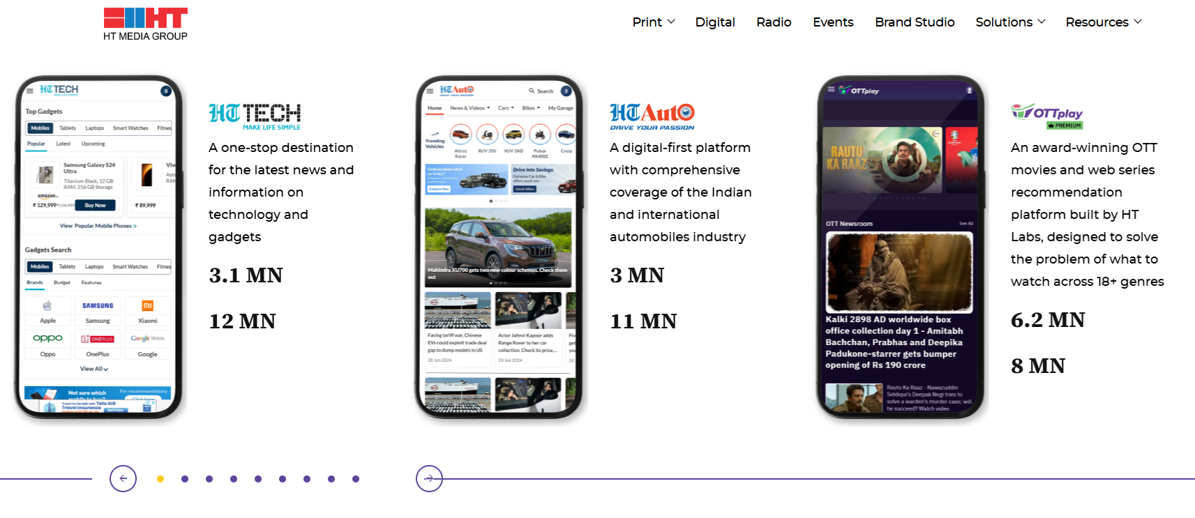 - Shopping and lifestyle, covering gadgets, appliances, and online marketplaces (brands: HT Tech, HT Shop Now).