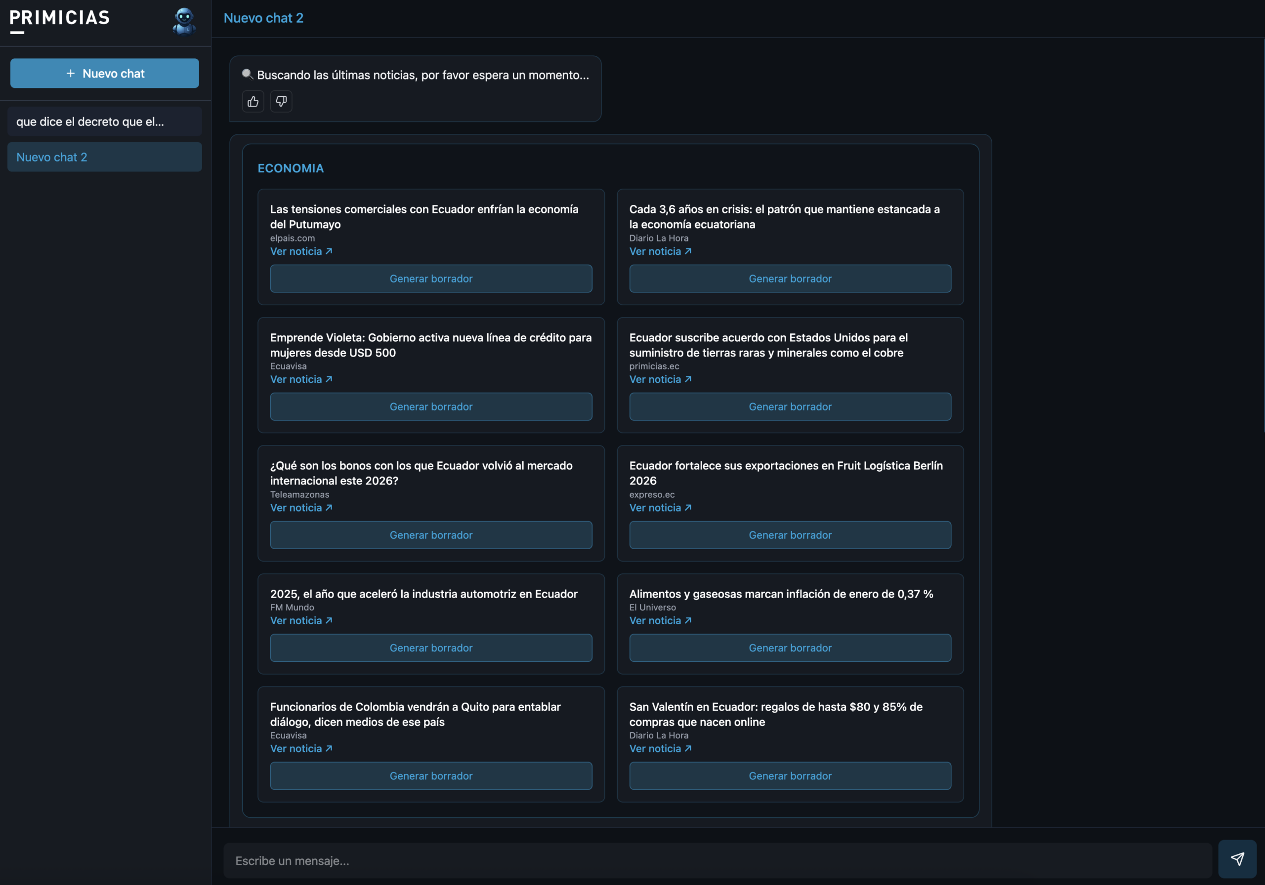 Frente al auge de la inteligencia artificial, Primicias comenzó a explorar cómo esta tecnología podía resolver un problema concreto de su redacción: el tiempo que los periodistas invertían en buscar información histórica para contextualizar los reportajes actuales. Dos factores profundizaban esta dificultad: la ausencia de una estrategia SEO consolidada y un buscador interno poco eficiente.