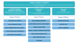 WAN-IFRA’s governance structure supports management in the face of constant change in the media environment and facilitates communication between management, the board, and the membership. The framework highlights three pillars that are the core of WAN-IFRA’s work: Press Freedom and Journalism, Media Sustainability, and Media Innovation.